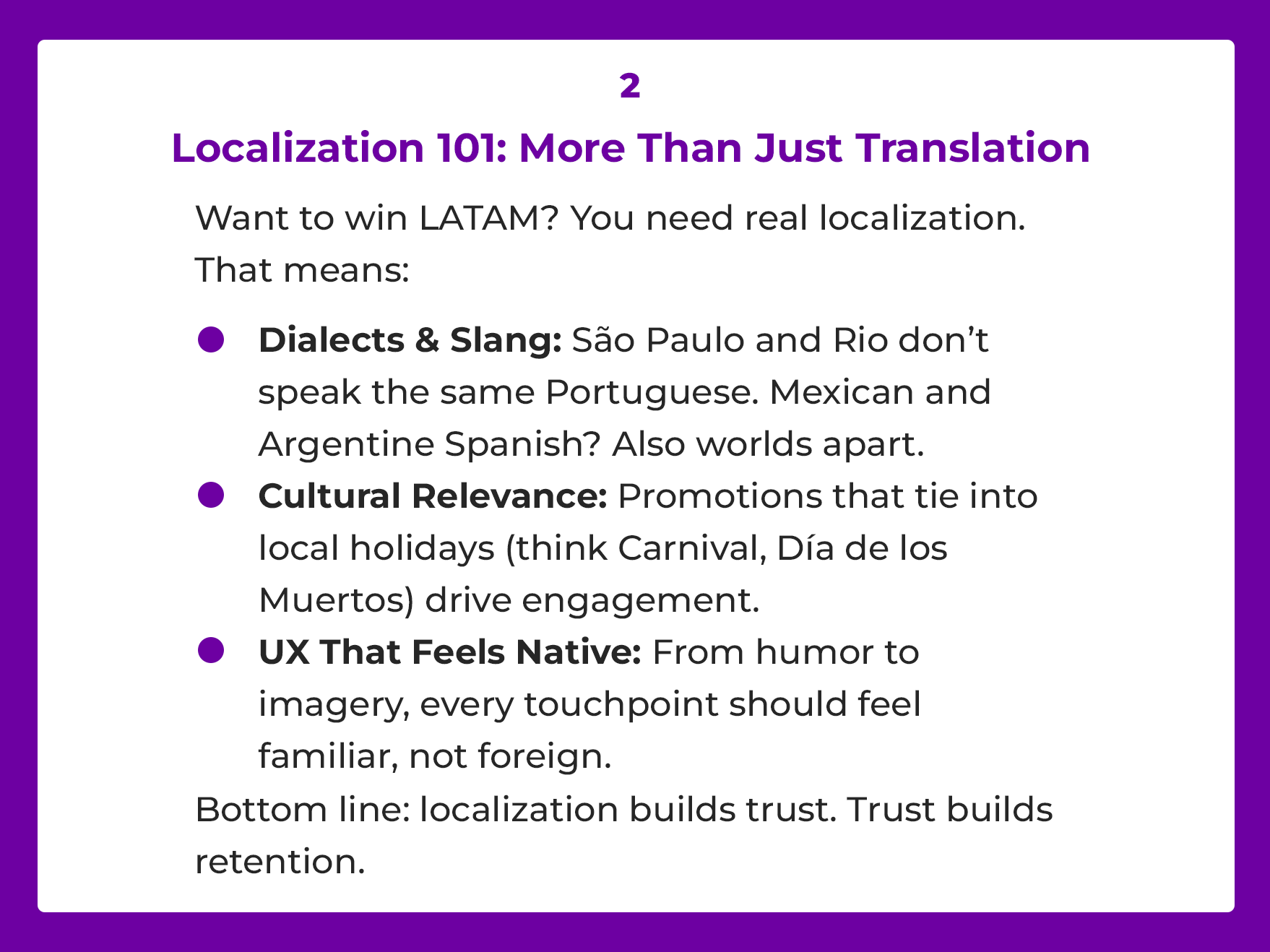We know LATAM — not just the languages, but the lifestyles, laws, and loves of local players.